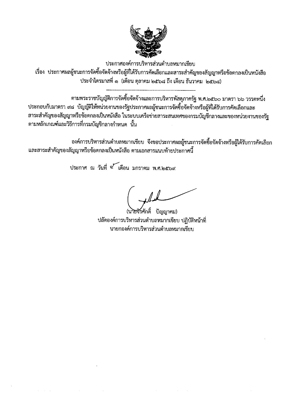 สรุปผลการจัดซื้อจัดจ้างหรือการจัดหาพัสดุรายเดือน