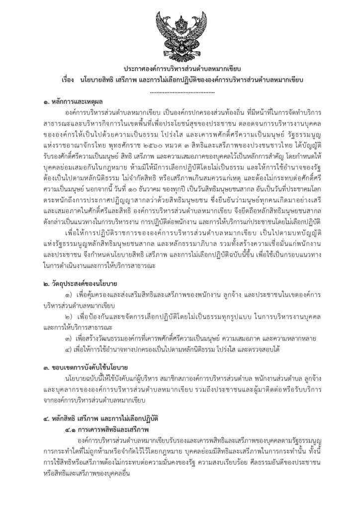 ประกาศ อบต.หมากเขียบ เรื่อง นโยบายสิทธิ เสรีภาพ และการไม่เลือกปฏิบัติขององค์การบริหารส่วนตำบลหมากเขียบ ประจำปีงบประมาณ พ.ศ.2569 29 มกราคม 202629 มกราคม 2026องค์การบริหารส่วนตำบลหมากเขียบ จังหวัดศรีสะเกษข่าวประชาสัมพันธ์