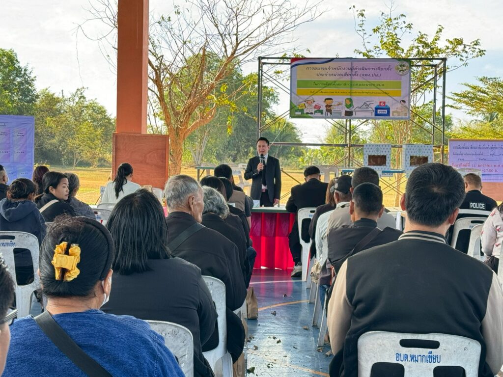 วันที่ 7 มกราคม 2569 เวลา 08.30 น. เป็นต้นไป องค์การบริหารส่วนตำบลหมากเขียบ โดย งานเลือกตั้ง ได้ดำเนินการอบรมเจ้าพนักงานผู้ดำเนินการเลือกตั้งประจำหน่วยเลือกตั้ง (จพง.ปน.) ในการเลือกตั้งสมาชิก อบต. และนายก อบต. ซึ่งมีผู้เข้าอบรมในครั้งนี้ จำนวน 150 คน ประกอบด้วย หัวหน้าส่วนราชการ พนักงานส่วนตำบล ลูกจ้างในสังกัด และเจ้าพนักงานผู้ดำเนินการเลือกตั้งประจำหน่วยเลือกตั้ง (จพง.ปน.) ทั้ง 11 เขตเลือกตั้ง ณ โดมสนามกีฬากลางองค์การบริหารส่วนตำบลหมากเขียบ 7 มกราคม 20265 มีนาคม 2026องค์การบริหารส่วนตำบลหมากเขียบ จังหวัดศรีสะเกษภาพข่าวกิจกรรม