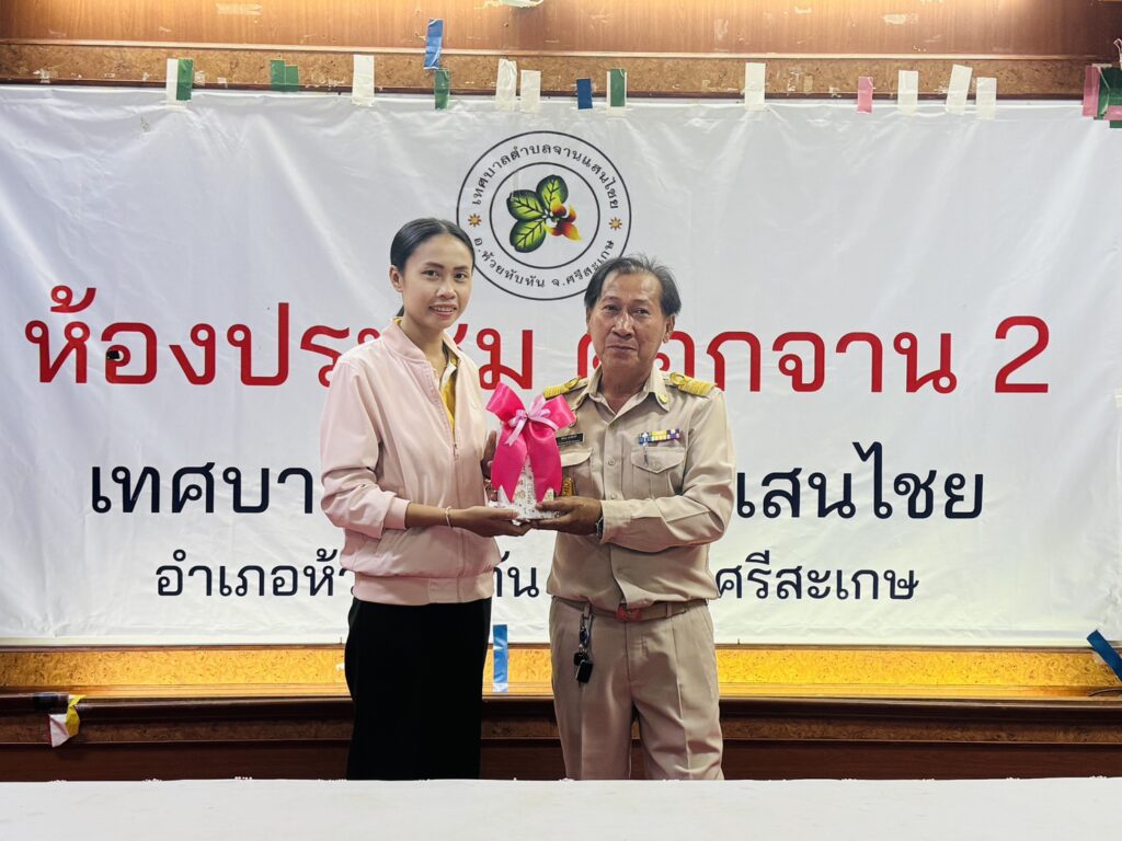ในวันพฤหัสบดีที่ 2 เมษายน 2569 เวลา 09.30 น. เป็นต้นไป นายแสวง เชื้อทอง นายกองค์การบริหารส่วนตำบลหมากเขียบ มอบหมายให้ นายเสถียร นนทะเสน รองนายกอบต.หมากเขียบ พร้อมด้วย นายอุทัศน์ พลเขตต์ เลขานุการนายกอบต.หมากเขียบ หัวหน้าส่วนราชการ และพนักงานลูกจ้างในสังกัดอบต.หมากเขียบ ร่วมแสดงความยินดีกับ นายพิทักษ์ ทองพันชั่ง เนื่องในโอกาส โอน (ย้าย) ตำแหน่ง นักวิเคราะห์นโยบายและแผนชำนาญการ เทศบาลตำบลจานแสนไชย ณ ห้องประชุมดอกจาน 2 เทศบาลตำบลจานแสนไชย อำเภอห้วยทับทัน จังหวัดศรีสะเกษ 7 เมษายน 2026นายอนุสรณ์ กานกายันต์ภาพข่าวกิจกรรม